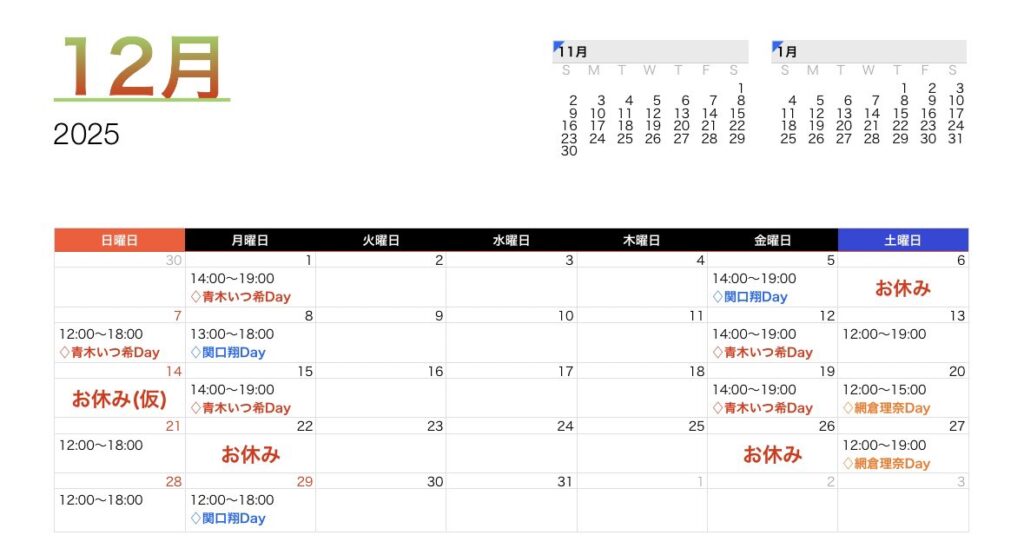 ホカクドウ 12月のスケジュールです❣ 大変遅くなり申し訳ございません🙇💦 すっかり冬の寒さが来ましたね⛄ 今年も大変お世話になりました 今月も最後まで、よろしくお願いいたします❣ 🎅ショーンキャプチャーWEB 🎄