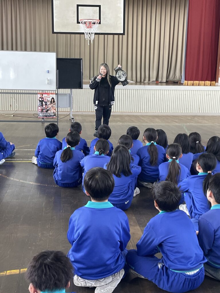 日高「この活動を始めて15年が過ぎました。初期に授業を受けた児童さんは20代後半の立派な大人になっています。今回も街中で声をかけられて、教え子と再会したような気持ちになって嬉しかったです。今は青木いつ希と相談をしながら、この活動を島根県各地で続けています。地元出身の先輩として、皆さんの夢を紡いで行ける存在でありたい。そして、ご縁の国しまねプロレスが、未来を担う子どもたちの夢の力を大きくして行きたいと思います」